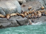 Today we went by catamaran to Juneau for the day, a long day, stopping enroute at a Steller sea lion rookery on Lynn Canal to see the huge males basking on the rocks while females and their pups nursed nearby.