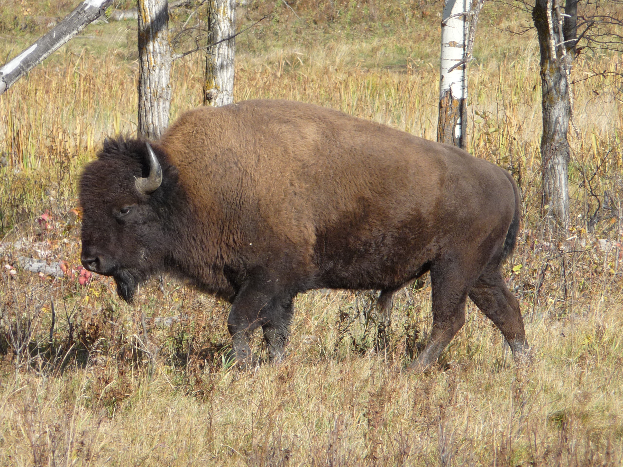 There are things you never think you’ll see in your life. John and I are visiting Brendan and Cristen in Edmonton for the Thanksgiving weekend and yesterday we drove out to Elk Island National Park where they’d hiked the previous weekend. It’s a very beautiful park, with marshes and lakes and skeins of trumpeter swans flying overhead. We walked the Lakeview Trail and had a picnic among poplars and sweet-smelling spruce. And we saw so many plains bison, about as impressive an animal as any on earth.