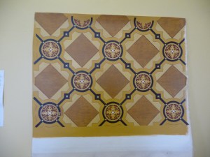From various clues, she knows there was once an oilcloth in the hall. This is a sample she developed.