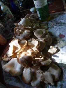 The rest we’ll eat fresh over the next few days. And in the time it’s taken me to write these few sentences, the house has filled with the delicious smell of oyster mushrooms in Sicilian olive oil…