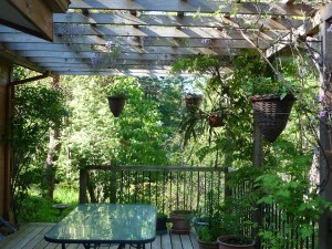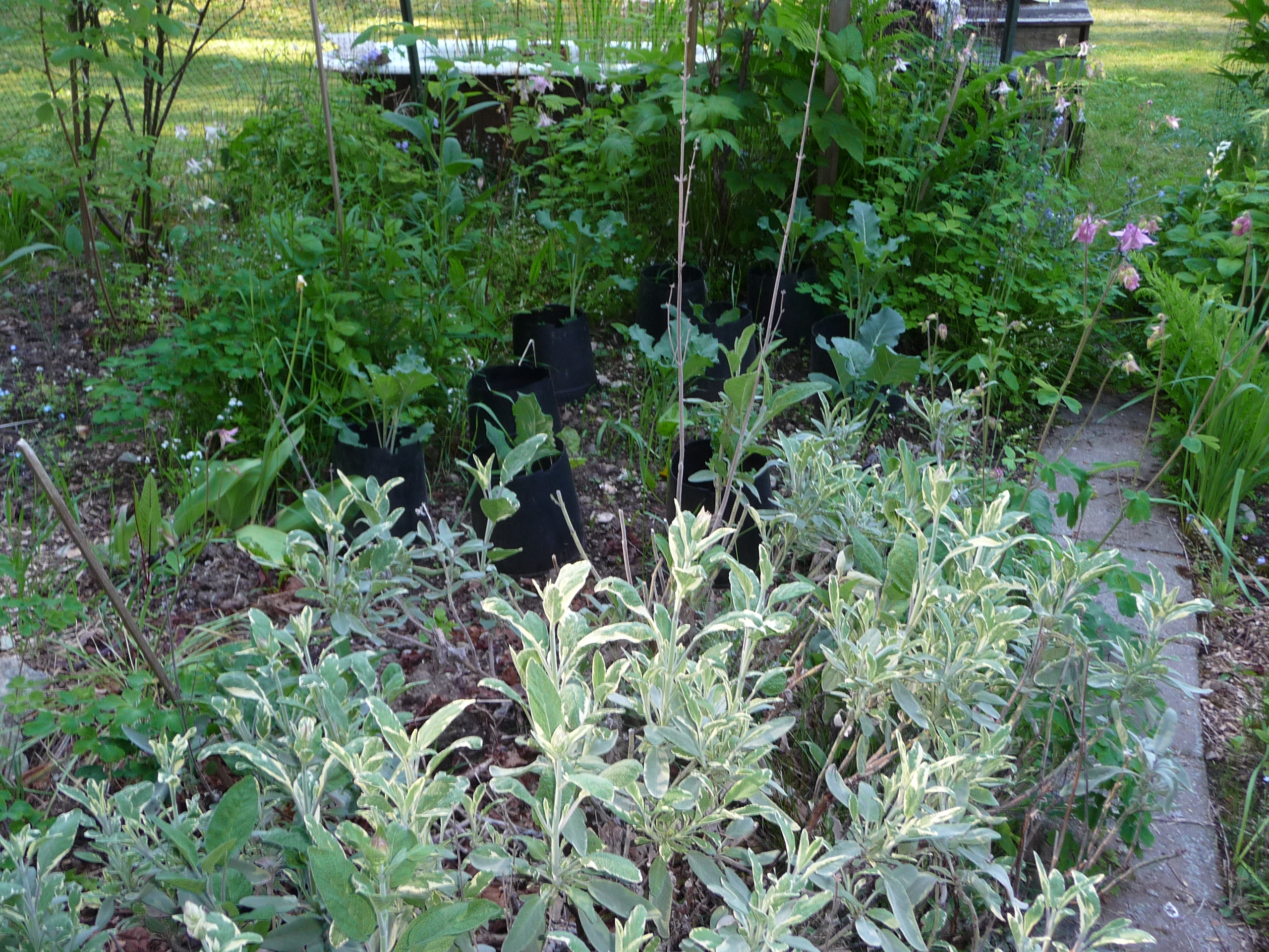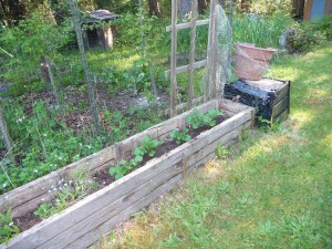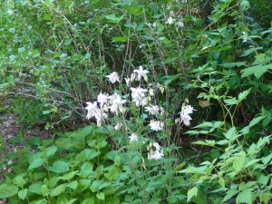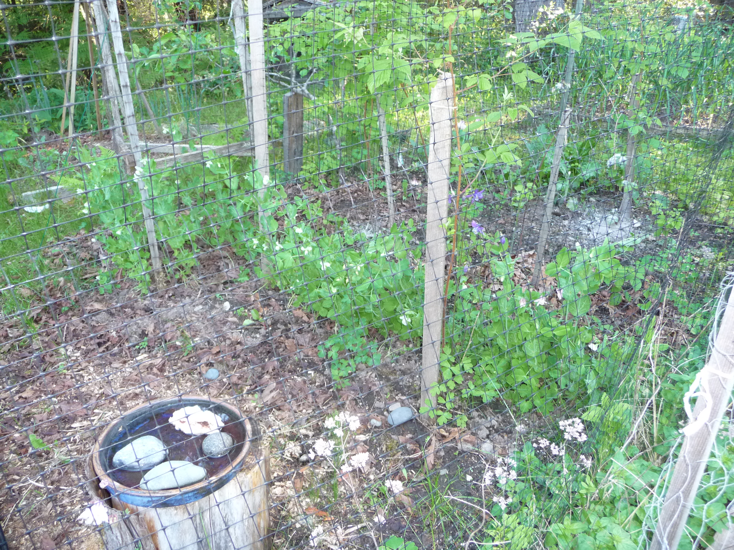 And here’s a view down the driveway where the crabapple brought to us by John’s mum almost thirty years ago is just finishing its bloom. Think of that tree as a bride, dressed in deep pink (her white sisters are further down the driveway), alive with bees. And then imagine a black bear sitting in the centre of the tree each fall, gorging on the scabby fruit…