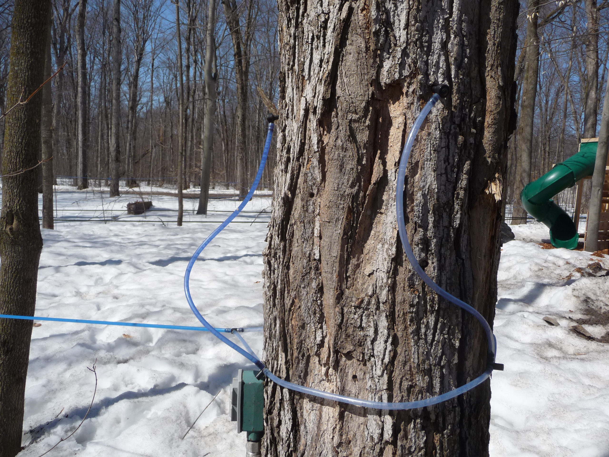 We went to a sugar shack near Ste.-Eustache the other day, a wonderful experience. There was breakfast — thick smoky pea soup with lots of bread, accompanied by creton, then followed by a souffled omelette, ham, sausages with maple syrup, and then sugar pie. We met Manon’s parents Gerard and Nicole there and sat with hundreds of others in a big noisy room and it was lots of fun. The man next to John kept showing him pictures of his workplace where he made thick wire used for construction and his son said with a smile that he didn’t think we had maples in B.C. Of course we do! The bigleaf maple! And people even make maple syrup from its sap, a long process, and there is even a festival of bigleaf maple syrup near Duncan in February. But you never see this: