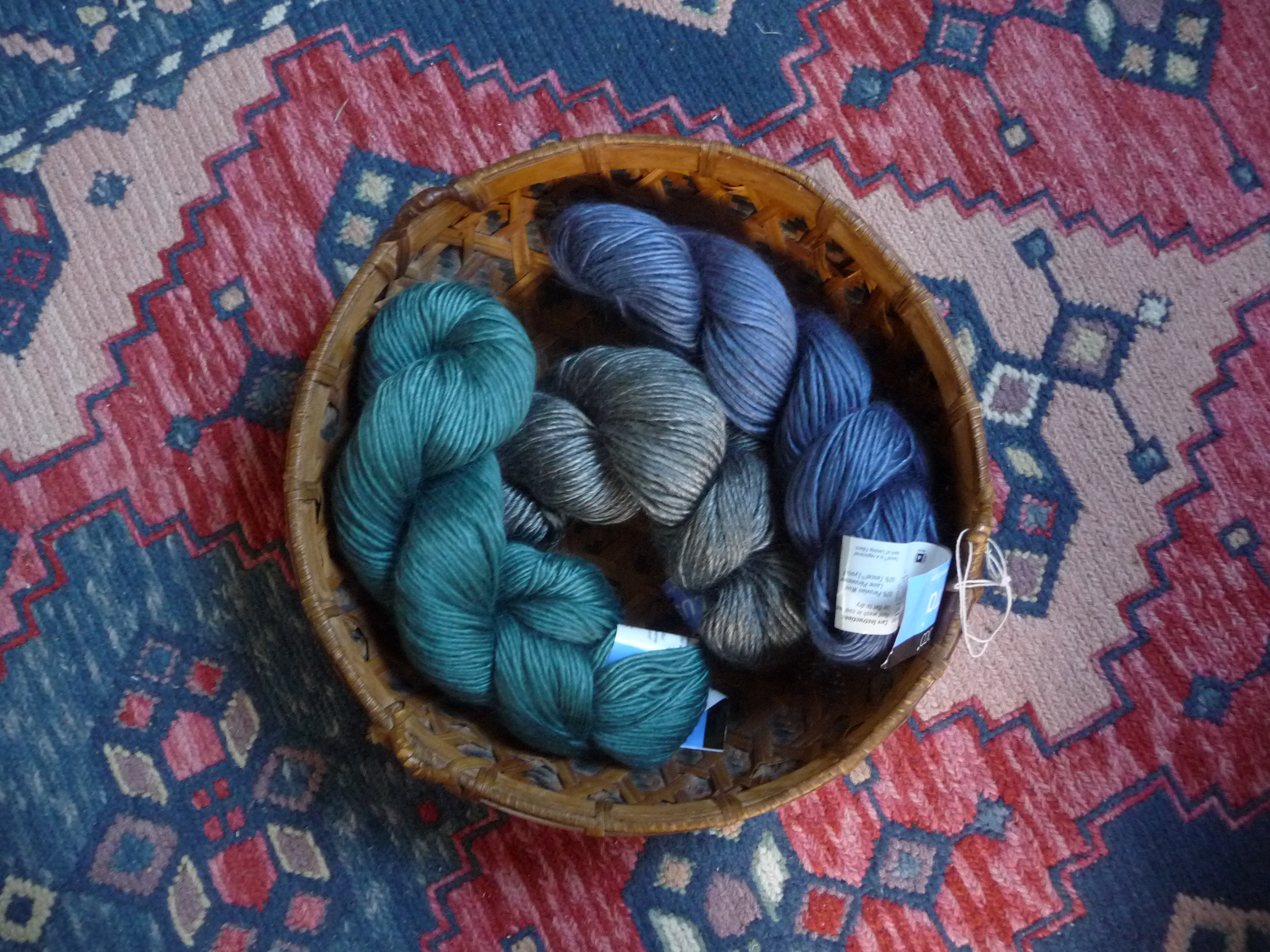 But I am slowly learning a little math, in part for an essay I’m working on called “Euclid’s Orchard”, which will have a quilt to accompany it, each piece — essay, quilt — documenting the other, and maybe it’s time to try to decode the knitting charts. I have the skeins to begin: