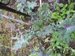 When we rebuilt our vegetable garden in February of 2013, I made signs for the new beds. Unnecessary, I know, but I wanted to give each of them a name. The names came from qualities in the wood used to make the boxes (wavy edges on cedar boards or a long ovoid knot) or for the plants in that bed (garlic; and there’s also the Raspberry Vestibule and Raspberry Beret, where, guess what, the raspberry canes are planted) or for some other feature that came to mind (Old Deck, for the source of the wood for one bed; Postbox, for another, made of old railing 4×4 posts leftover when we replaced the railings on the upper deck with metal). There’s Long Barrow and Thin Deck. And the flower borders around the edges which are still unnamed. But give me time. Anyway, I thought the acrylic paint I used for the signs might fade over the winter but it didn’t. I wish my graphic skills were a bit more sophisticated. And it’s so wonderful to be able to work in the garden again, to see the robins hovering just behind me to feast on the worms dug up as I weed the beds, and to tuck the little sprouted pea seeds into the furrows. (I sprout them inside and plant them out when they’re about three inches high. Otherwise, birds pluck them from the ground just as they sprout and eat the tiny fresh tendril, leaving a hollow seed behind.) The floor around the woodstove is cluttered with pots of sprouting spinach, miner’s lettuce, tomatoes, and a few more trays of peas. And the sun is shining.