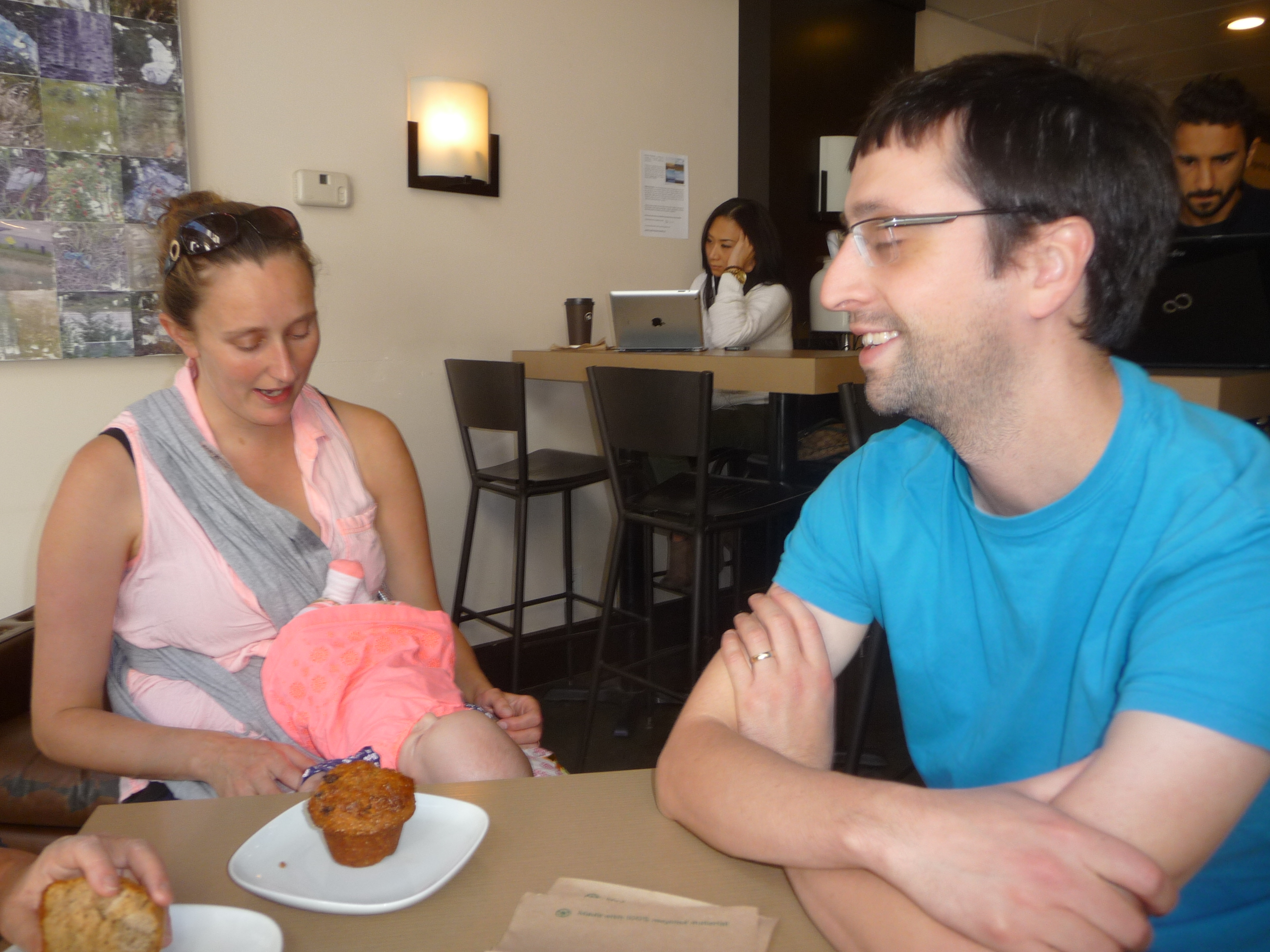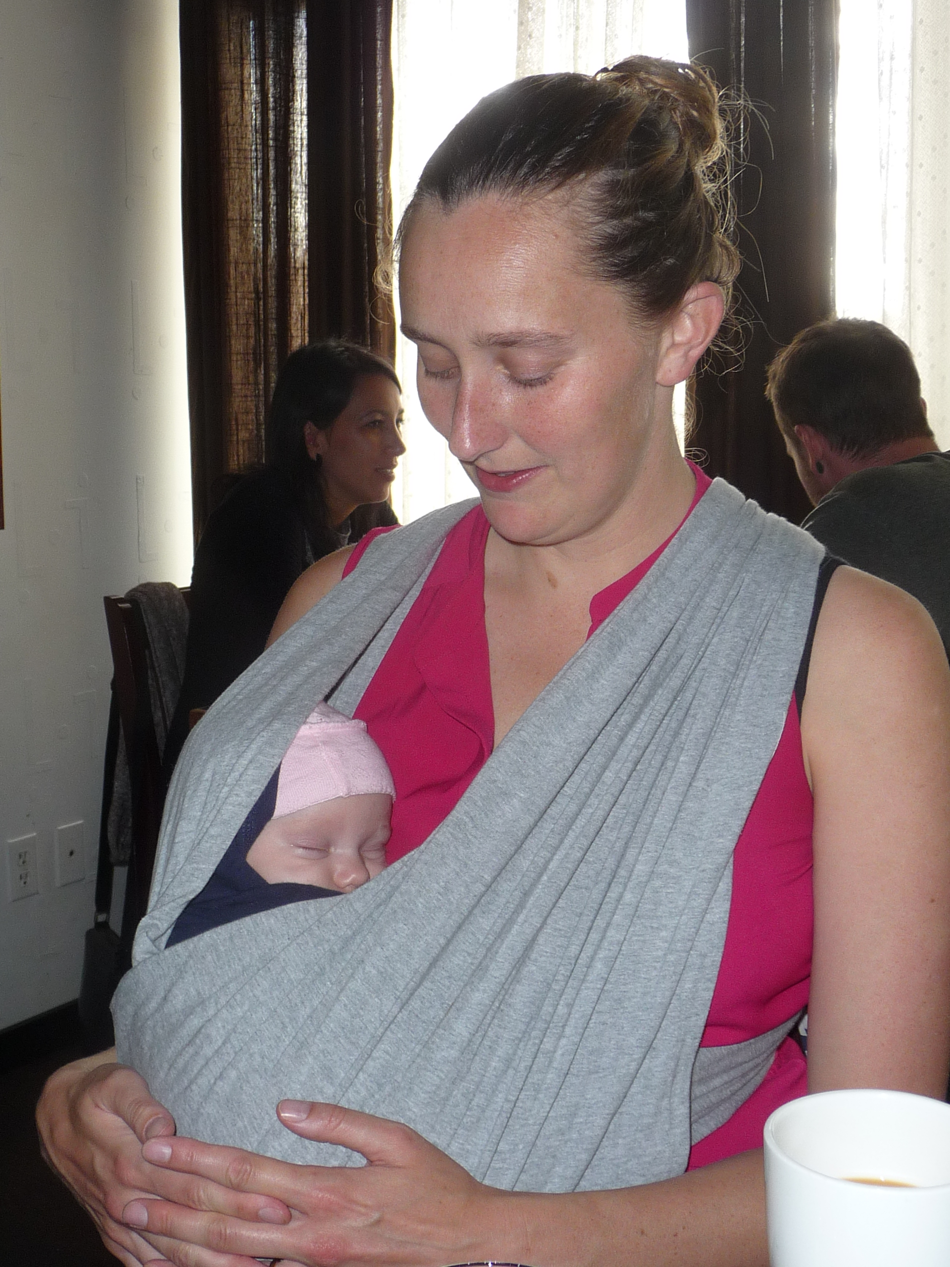 P1100636There was a delicious brunch at Culina where Kelly slept in her sling while the rest of us ate Eggs Benedict and drank mimosas —