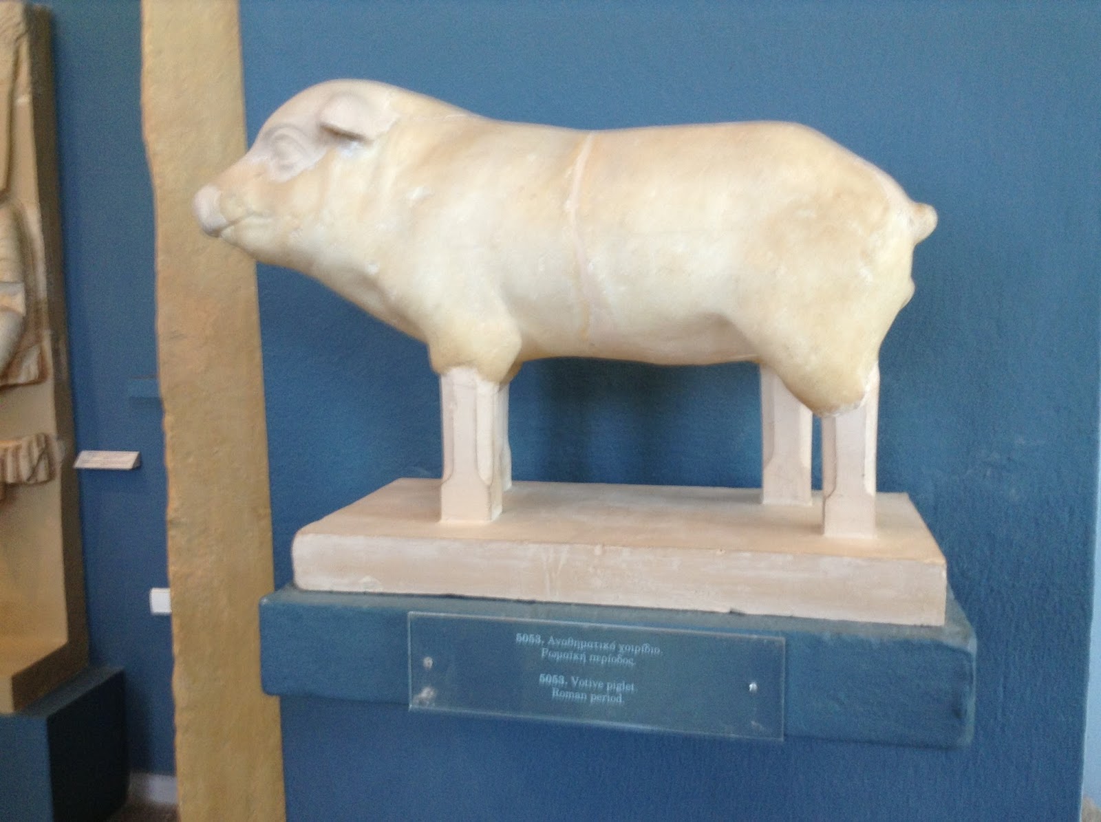 I think I loved best the votives, the small offerings (or maybe especially the small ones) to be left in sanctuaries, central places for worshipping gods and lesser divinities. From Olympia, the most glorious horses, bulls, and an elegant clay pig. Who loved that pig enough to model it in clay and offer it to the gods?