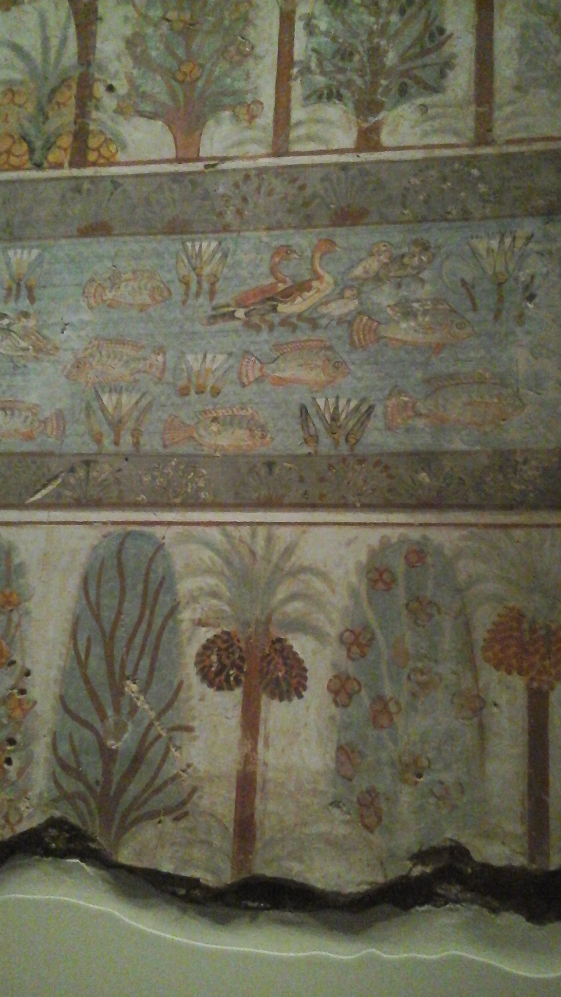 So much for plans. I wanted to revisit the Chelsea Physic Garden, a place that enchanted me in the mid-1970s. It was established in 1673 as an apothocaries’ garden and I remember feeling the first tendrils of what became a full-blown interest in ethnobotany as I walked along those tended paths. We took the bus over, riding the top deck in pleasure along Oxford Street, past Regent Street’s elegant curve. Got off the bus at the Royal Chelsea Hospital — a retirement facility for old soldiers, a few of them in red jackets and blue caps along the road. But, no — a sign on the gate saying the garden wouldn’t open until 2. (It was 10:30.; the opening time advertised on the website is 9:30…) We had coffee and a very expensive sweet in a little patisserie on Sloane Street and caught a bus back to the British Museum. Patrin Szkandery, the main character in my forthcoming novella, is interested in a wall-painting from the tomb of Nebamun (c.1350 B.C.) and I have only a vague memory of that work (which goes to show that fictional characters have their own interests and lives…). But looking today, I could understand her attraction to the painting. Patrin particularly loves the pool in the garden and I did like that, too —