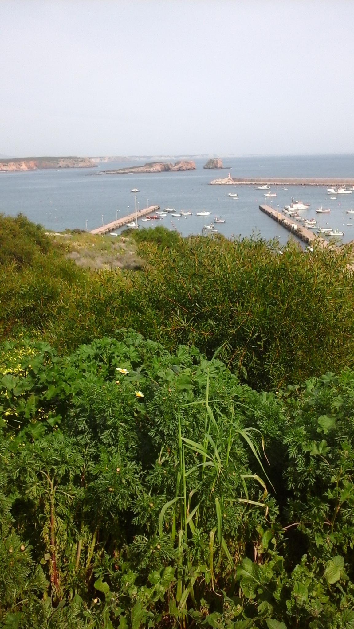 So we jumped on a bus for Sagres, a small village out towards the very western point of Portugal. The bus rattled its way through villages and wild areas, through hills yellow with mimosa, past signs pointing up narrow roads to megalithic sites (and of course I wished the bus would abandon its usual route and schedule and take us there…), to pretty Sagres on its headland above the Atlantic:
