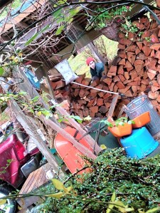 And then a friend called to ask what we needed him to do. Could I do some yard work for you, he wondered. Could we — meaning him and his young son–split kindling for you? As soon as John mentioned the cedar logs, he said right away that they’d come and cut them, split them. Could they use our saw? Absolutely. This morning they arrived in their truck and spent a good few hours down in the old orchard, cutting and splitting and filling the truck. When they arrived up at the house, I brought out muffins and coffee, and we talked (at a distance) by the woodshed, which was looking pretty depleted. But then they unloaded and stacked the sweet-scented cedar behind the dry fir. In a few weeks it will be ready to burn. I thought of Du Fu (I know I write about him often) with his firewood gate in Chengdu City, a man who understood the importance of heat in the cold months. And the knowledge of life’s