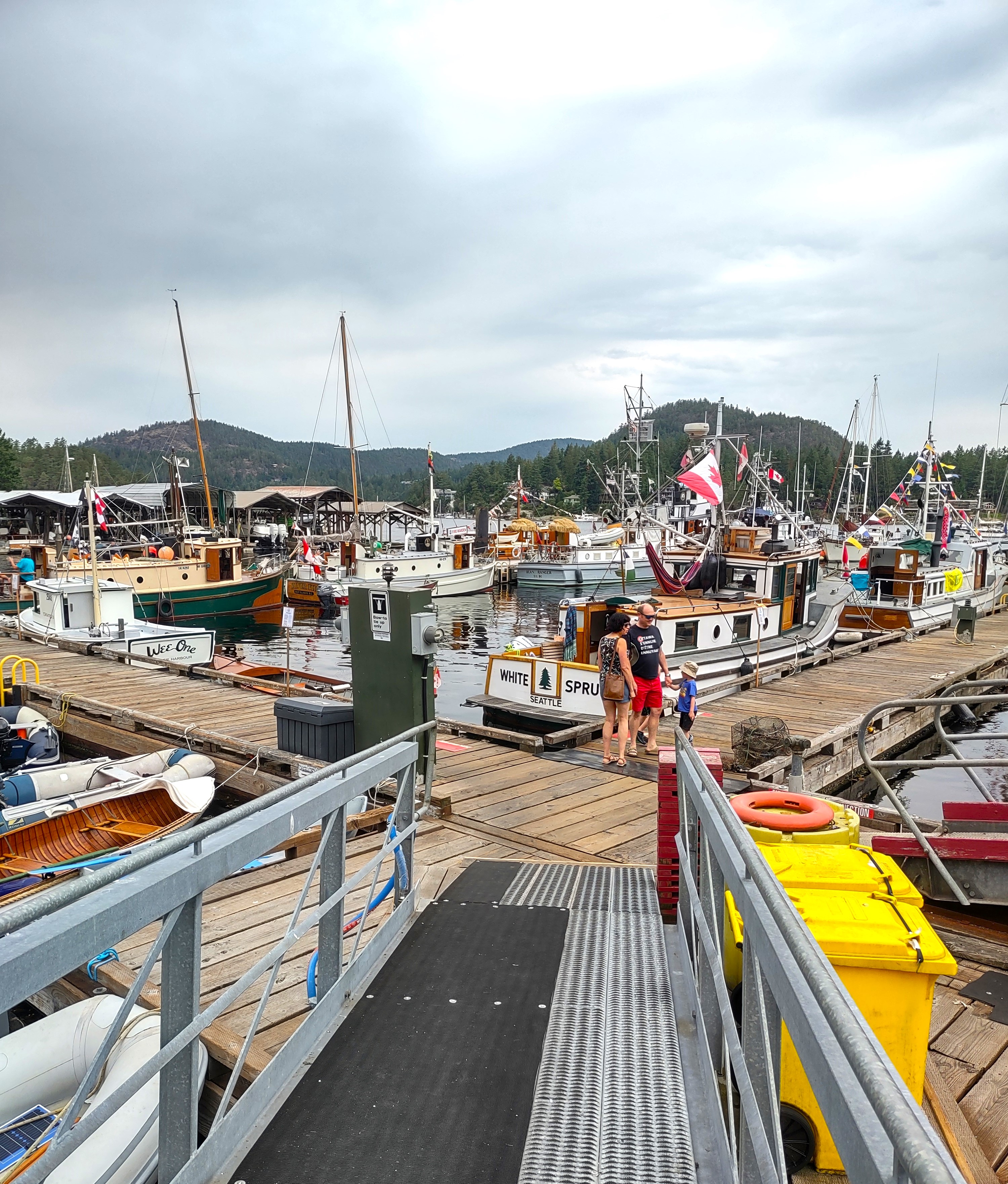 Over the weekend, it was the Pender Harbour Wooden Boat Festival. There are events for a couple of days but the best things (in my opinion…) are the boats themselves, all classics, most of them beautifully restored. The former B.C. Forest Service boats are just splendid. You can see the White Spruce behind my Ottawa family. These vessels were used to patrol and police logging operations from 1913 onwards. The little boys loved walking the dock and asking permission to board selective boats. I loved imagining another life, in which I lived on one and gunkholed up and down the coast at leisure, putting out a crabpot to catch dinner, trailing a line for salmon. (Luckily we had sockeye salmon at home yesterday so came back to fish tacos even though I don’t have a boat…or at least not a wooden boat with skylights and nautical flags.) There were old NFB films showing in the Music School, vintage moments in coastal history, including a sweet one about the school boats taking kids from remote communities to tiny schools. Pender Harbour had a school boat in the old days.