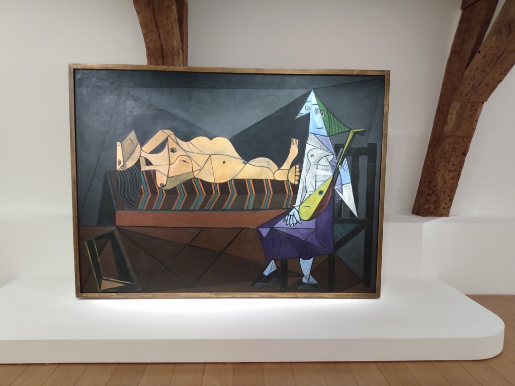 I loved everything about the Picasso museum — the stone stairs worn in the centres, the white shutters, the paintings and drawings and ceramics, the relationships–Matisse, Cezanne, Jackson Pollock–the beautiful women, and maybe most of all, the Aubade, a morning song, darkness and light, its preparatory drawings so stunning, and how I am still thinking about it after lunch at Cafe Breizh where we also ate in 2009, buckwheat galettes with cabbage, sausage, Comte, mustard creme, a glass of cider, and sorbet, also buckwheat, and the familiar walk back along Rue Rambuteau.
