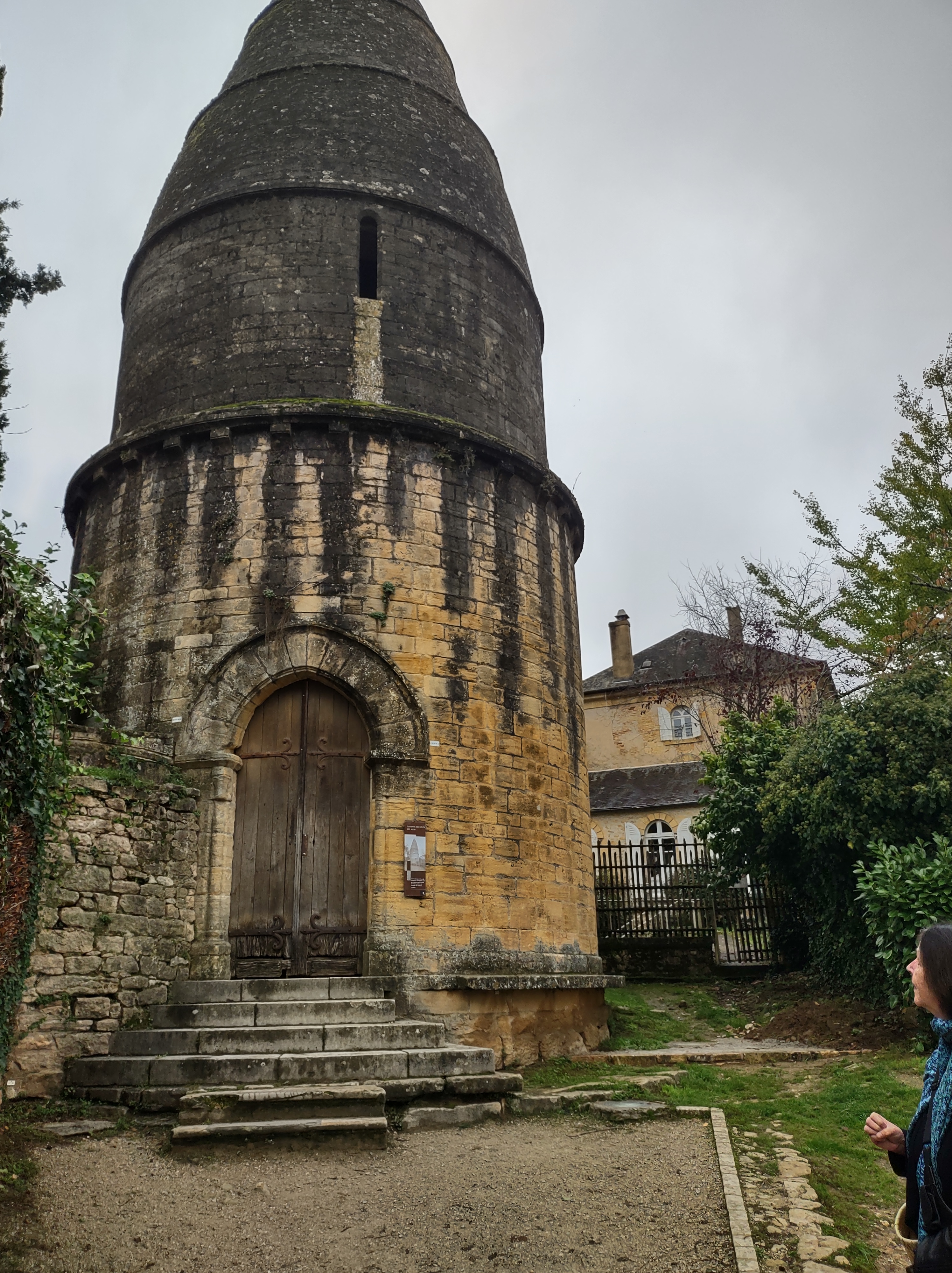 This morning, a walk up behind the Cathedrale Sainte Marie where the sounds of organ and voices floated out of the open front doors, to the 12th c. Lantern de Mort, which may also be a Lantern les Maures, built to commemorate the abbot Bernard of Clairvaux, who played a major role in the Second Crusade and who visited Sarlat in 1147. This morning the air was soft and held every ancient aspect as tenderly as love.
