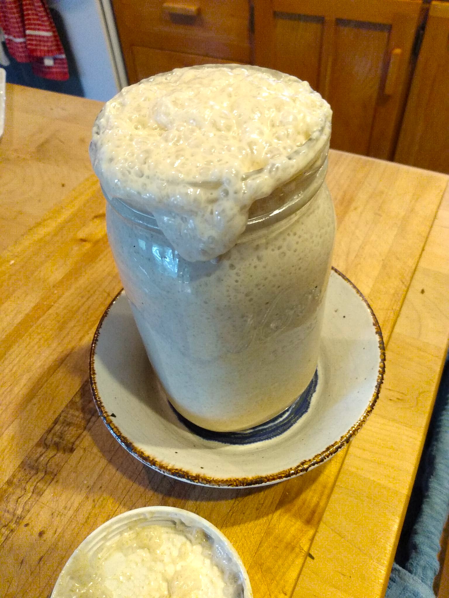 In January I decided to make sourdough starter again. I thought our kitchen must be teeming with wild yeast and it would be simple and I was right. My starter took 6 or 7 days. I didn’t weigh the flour and water, I didn’t use a thermometer or any of the fancy equipment required in many of the recipes. I used unbleached white flour and some dark rye. Tap water (we have a well and our water is delicious). It did what it was supposed to do and now I have a quart jar of the most beautiful starter. I call her Artemis.