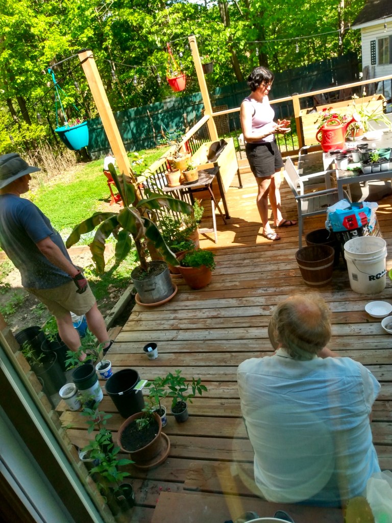 Yesterday, late afternoon, we returned home after spending 5 nights in Gatineau. Each day was full: swimming in Meech Lake, walking, making large meals, reading stories to the young grandsons, looking at A’s stamp album in which he detailed each stamp (it took awhile but what a lot he knows about geography and history at age 9…), helping plant the tomato seedlings in between pours of rain.