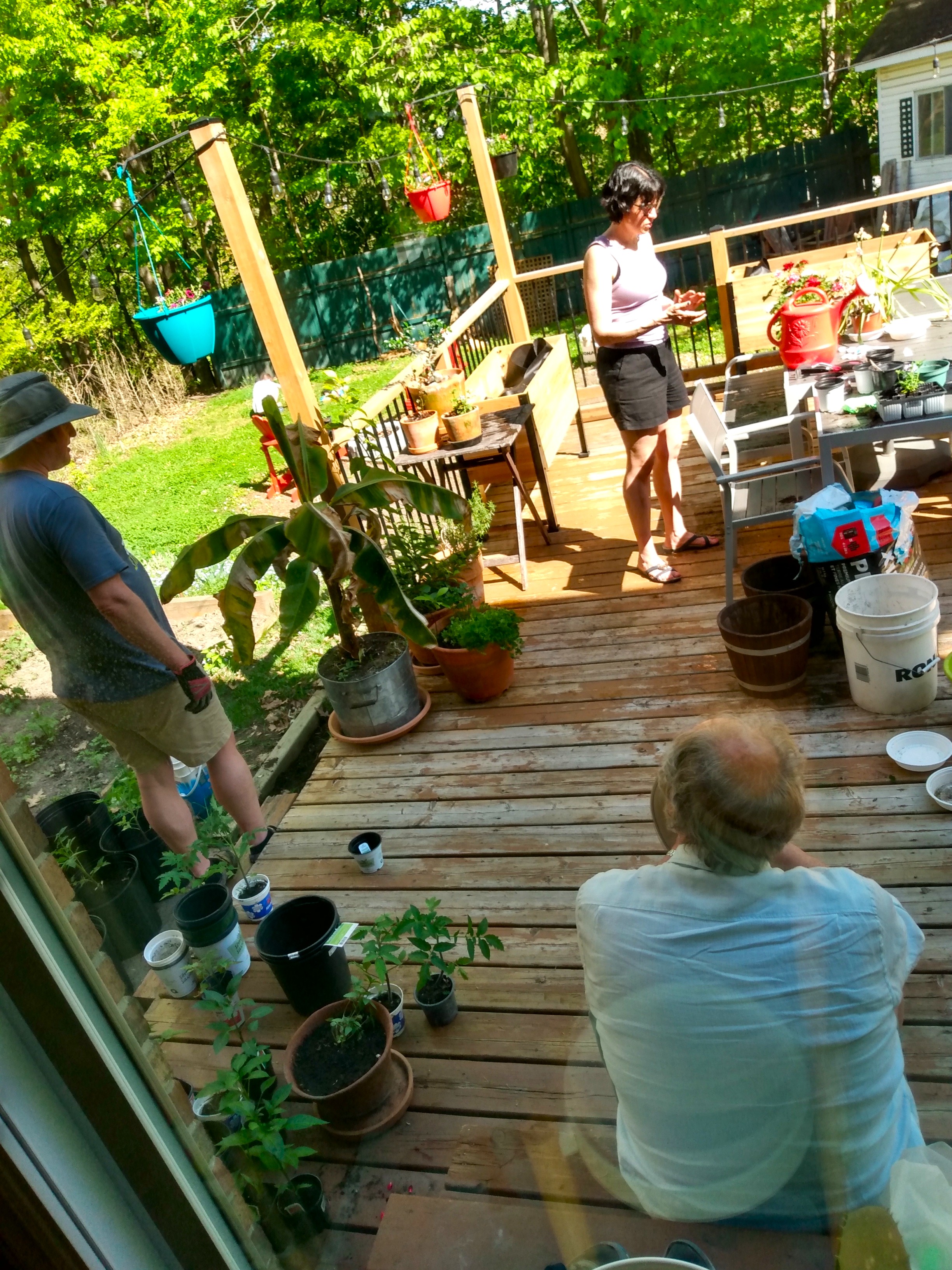 Yesterday, late afternoon, we returned home after spending 5 nights in Gatineau. Each day was full: swimming in Meech Lake, walking, making large meals, reading stories to the young grandsons, looking at A’s stamp album in which he detailed each stamp (it took awhile but what a lot he knows about geography and history at age 9…), helping plant the tomato seedlings in between pours of rain.
