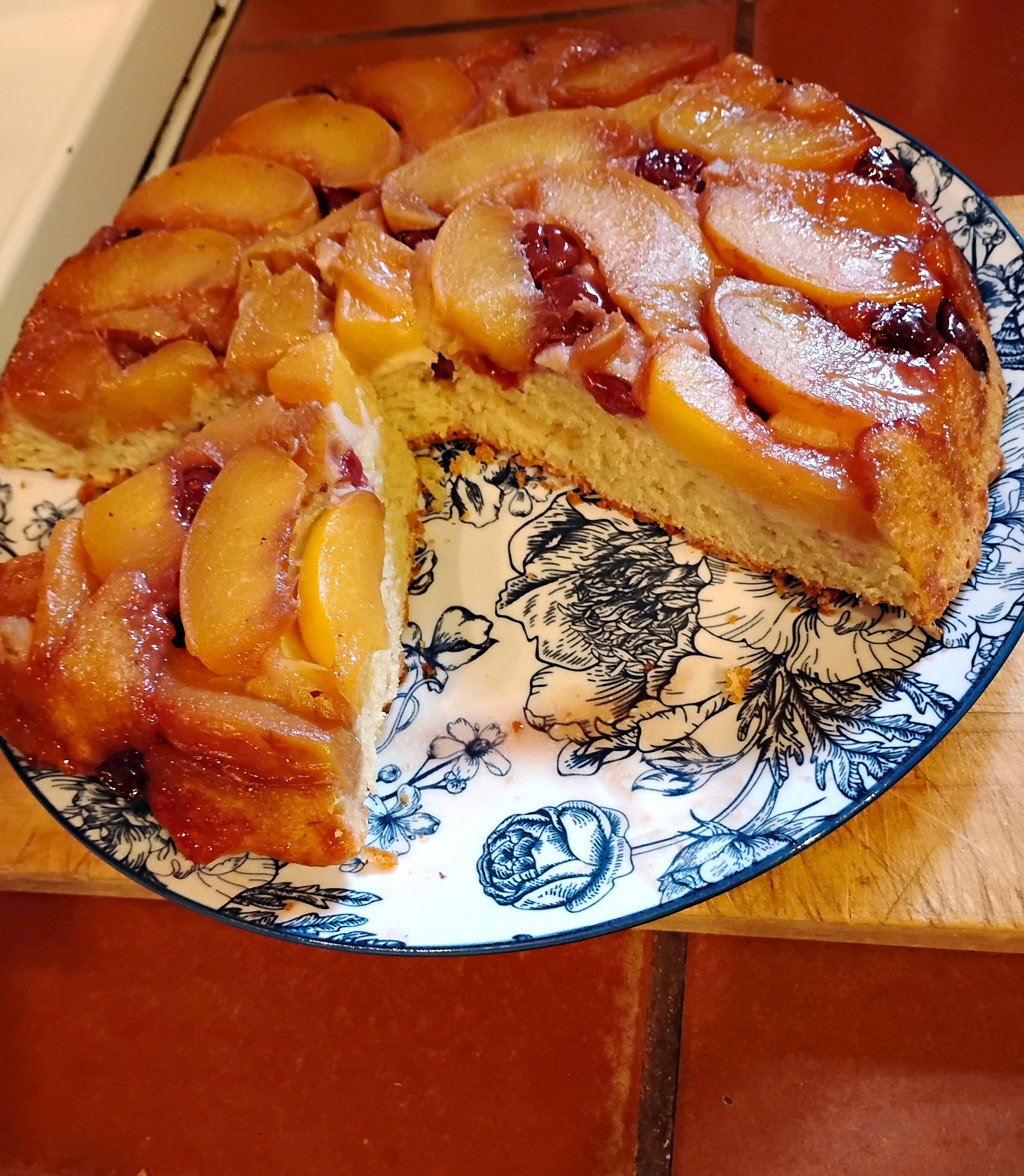 Making: It’s the time of season for taking and making stock, for putting food away (as in preserving), for using up the garden’s bounty. And what does “stock” mean? From the Etymology online site, the mostly 15th c meanings: “stump, wooden post, stake; trunk of a living tree; log”; “block from which a bell is hung”; “gun carriage” (and as a gunsmith’s daughter, I remember my father making stocks of walnut and cherry, shaping, polishing and oiling); “supply for future use; collective wealth”; “lay up in store” (17th c); “broth made by boiling meat” (18th c); and many more, so many more that stock itself, taking it, making it, could result in a book. Or an apple cake, using Merton Beauties and some bottled tart cherries in a skillet, covered with browned butter batter. Reader, it was delicious.