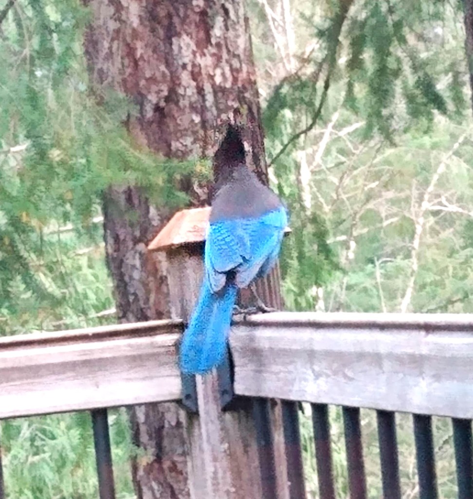 A wild patience. Can I choose two words for the new year? Can you? In the meantime, I wish everyone who finds me here a very good year. There is a little band of pinky-gold light on the western horizon, beyond the lake, beyond the trees. The chickadees are fluttering by the door and the jay is waiting in the big fir for more seeds. The morning has a kind of clarity, green, snowy white, the blue feathers of the jay. I wish everyone, even myself. In a little while, I’ll bring in the basket of blue fabric to sew by the fire. Nothing needs doing as much as that.