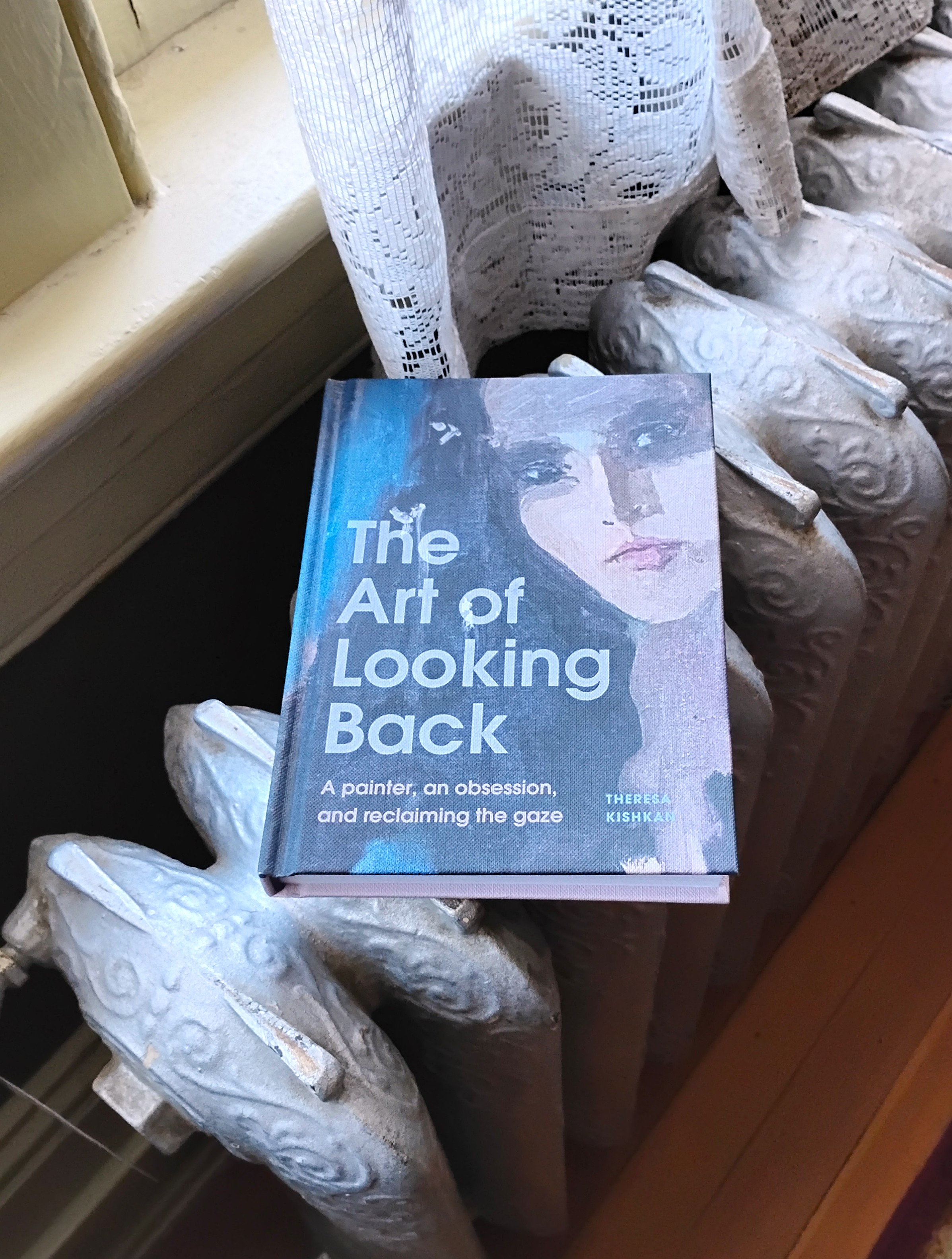 There were plum blossoms on the car when we went out this morning, and 3 deer in the parking area of the BnB where we are staying on Rockland Avenue. The sky was huge over the Strait of Juan de Fuca and as we drove towards the breakwater, we saw a film crew set up by the Surf Motel, our favourite place to stay in Victoria. (They close for a couple of months each winter…) Everything was charged with the magic of Victoria in February, the month we met in 1979: the plum blossom, daffodils in yellow swaths below Beacon Hill, people sitting at outdoor tables drinking coffee in the sunlight. We did that too, yesterday, after my event (with Kim Spencer, Bill Gaston, and Jesse Winter) at the Western Book Reps Association Book Fair, when my publisher Eve Rickert handed me 1 of 2 early copies of my new book, The Art of Looking Back. Paperback ARCs had been printed for the book reps and booksellers at the event but somehow she’d been able to have 2 copies of the book rushed from the printer and oh, it is everything I hoped for, and more. The cover has a canvas texture, perfect for the detail of portrait reproduced on it. I hadn’t expected the endsheet as I opened the book, a collage of the archive that inspired me to write this book: at the centre, the drawing the painter sent me shortly after we met in 1978 and which should have sent me running in the opposite direction; samples of the huge stack of letters he sent me over nearly 20 years; and other moments I used in the book to help me look back.