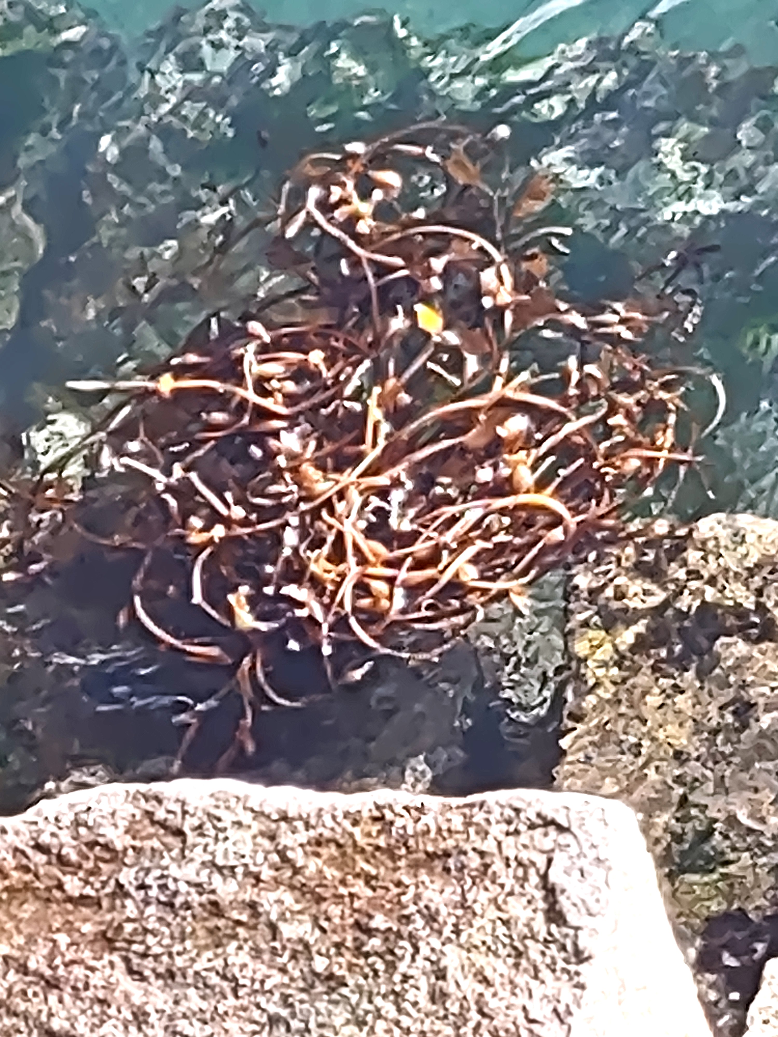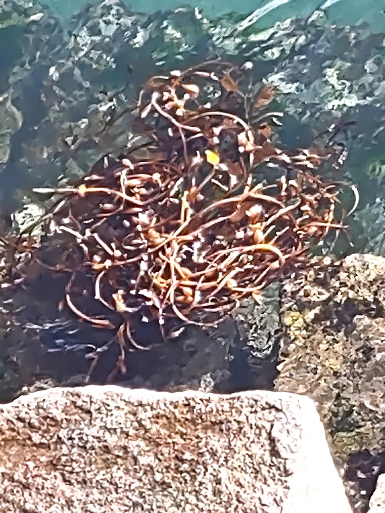 Plum blossoms on the car this morning, the scent of the sea as we walked the breakwater, the swirl of kelp below me when I stopped to look at a sea lion in the green water: