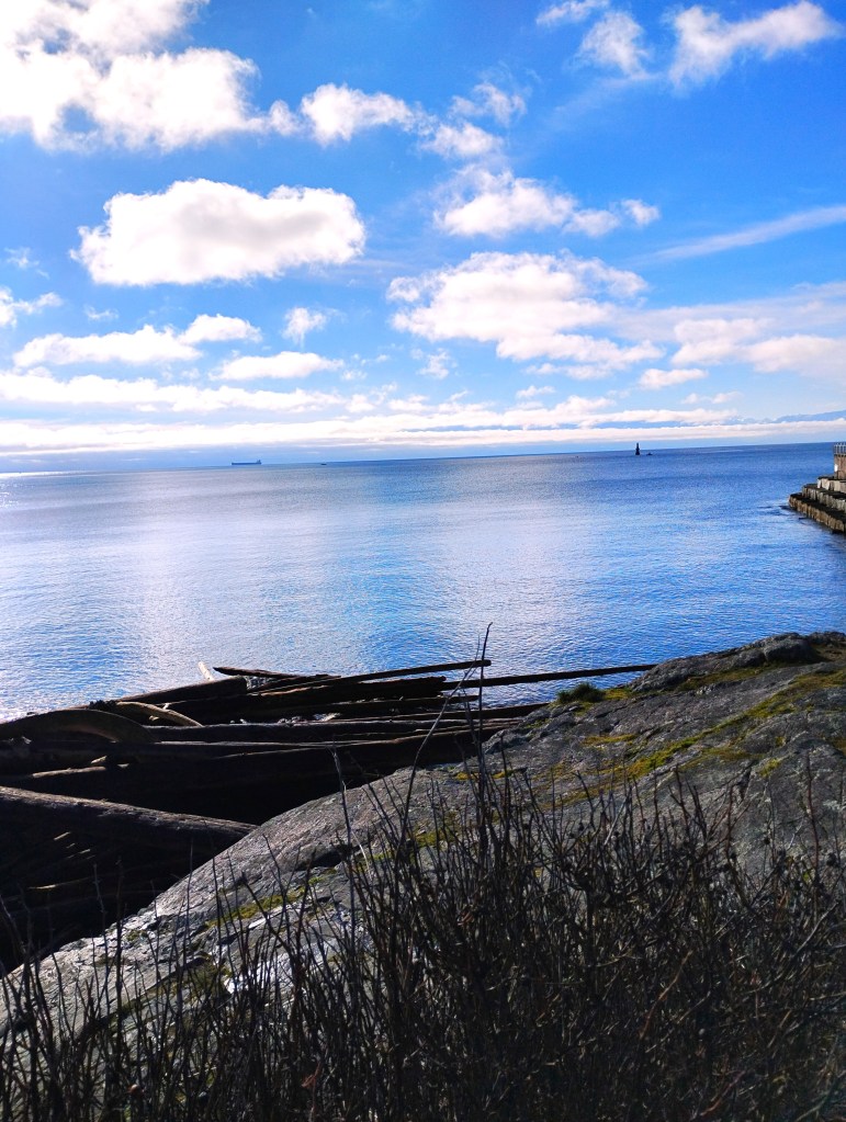 The kelp felt like the tangle of feelings I’ve had over the past 2 days–elation, a kind of far-sightedness as we walked in the Garry oak wood below Government House, hearing sea lions barking on the Trial Islands, seeing the new leaves of camas in the grass below the oaks, and even the memory of myself as a Brownie visiting Government House 65 years ago, LG George Pearkes hosting our pack for tea and asking us about knots. Yes, we sat out in sunlight too, at Ottavio Bakery in Oak Bay, my new book at hand, plum blossom on the Avenue, and although most people were drinking coffee, I had a glass of rosé, the day a swirl. I was awake for a good part of the night, re-reading, though it felt like the first time, The Art of Looking Back. I was surprised to see the sun rise because the night, like the years, passed in a heartbeat.