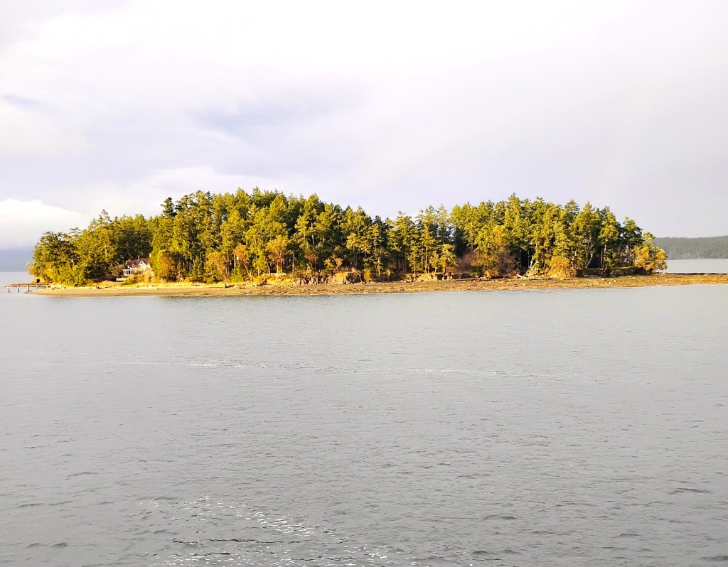 It was a week ago today that we were arriving at Swartz Bay, passing first the bigger Gulf Islands and then the small ones, and I was remembering a summer sail on a friend’s boat, 50 years ago, when we anchored out near one of the little islands and rowed to shore in the dinghy. My friend had noticed on a previous sail that there was arbutus down on the island, victim of a storm, and he wanted to cut it for firewood. While we cut the wood into lengths with a Swede saw and piled it into the dinghy, blueberry muffins were baking in the cookstove in the galley.