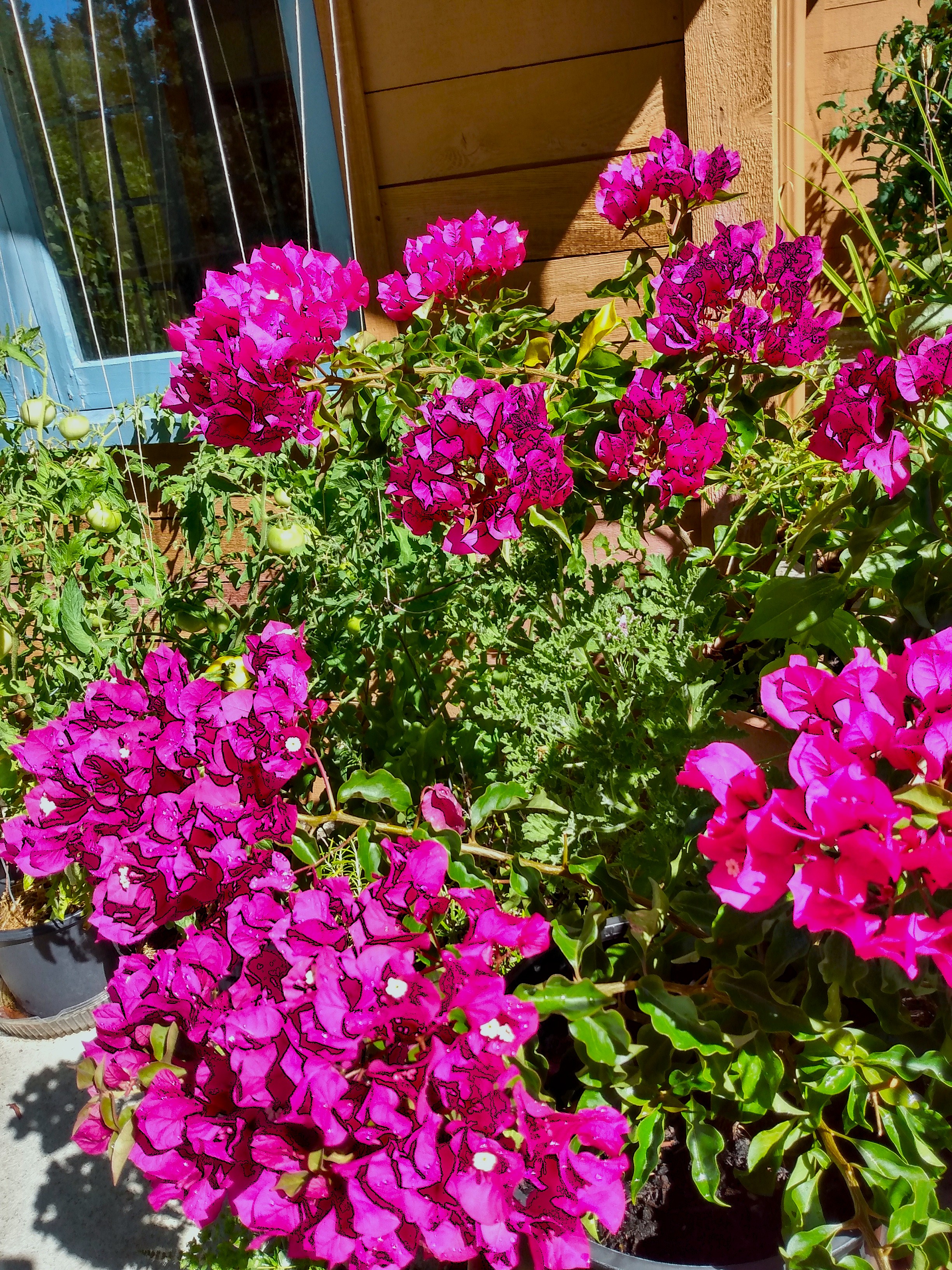 The book of mornings would hold these things. The scent of coffee, the blue of the jays as they glide to the railing, the smudge of brown on the black bear’s nose. Was he coming for tomatoes when John saw him at the top of the stairs? Basil? Did he just want to explore the table where we sit after our swim, a cerise bougainvillea to one side, a Desert King fig to the other, a tin from Greek olive oil holding a rosemary at its roots?