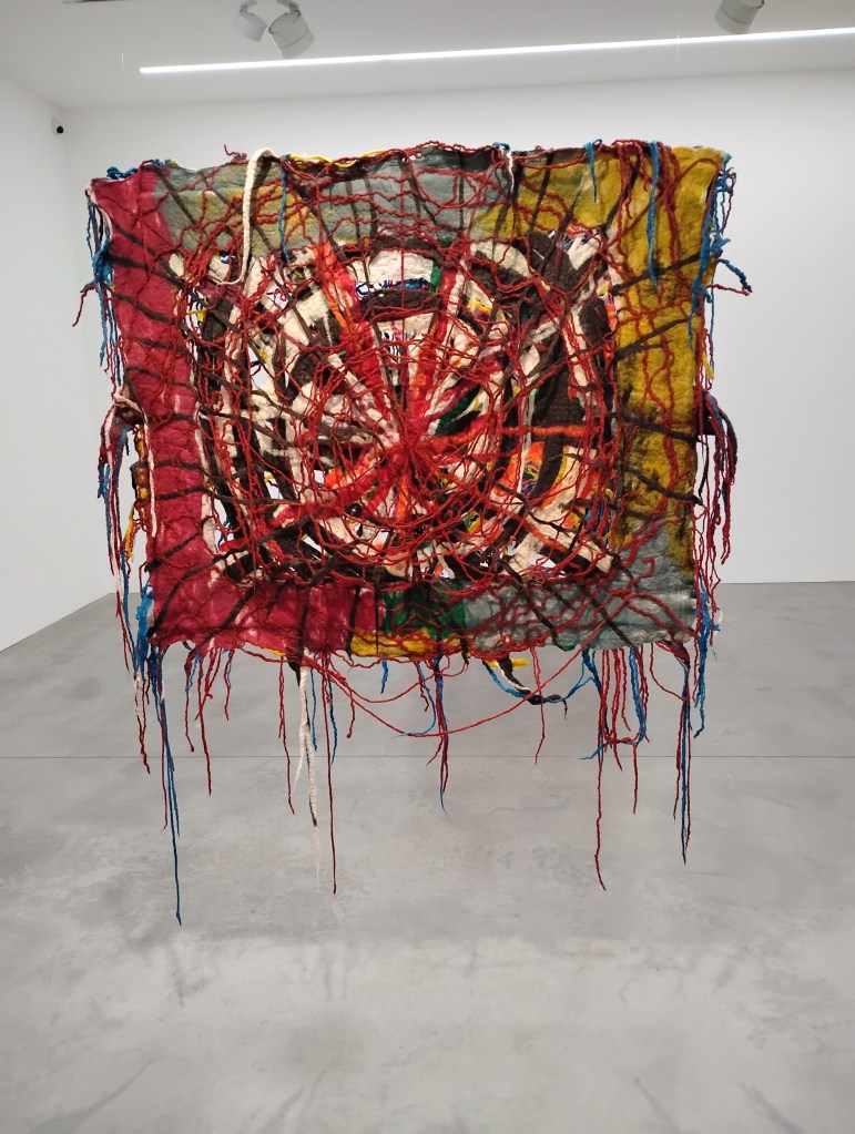 Creatures of habit, we return to old haunts: Marchmont Street, the curve of Cartwright Gardens and this tiny flat, mezes near the British Museum last night. This morning, Sagarika Sundaram’s ravishing creations at the Alison Jacques Gallery. Layers of felted wool, some areas spliced open, long threads on some pieces begging to held and followed. They made my own hands twitchy to make something. Tonight, a play. Tomorrow night, a play. Right now? Rain on the huge plane trees. Ombra mai fu. xxx
