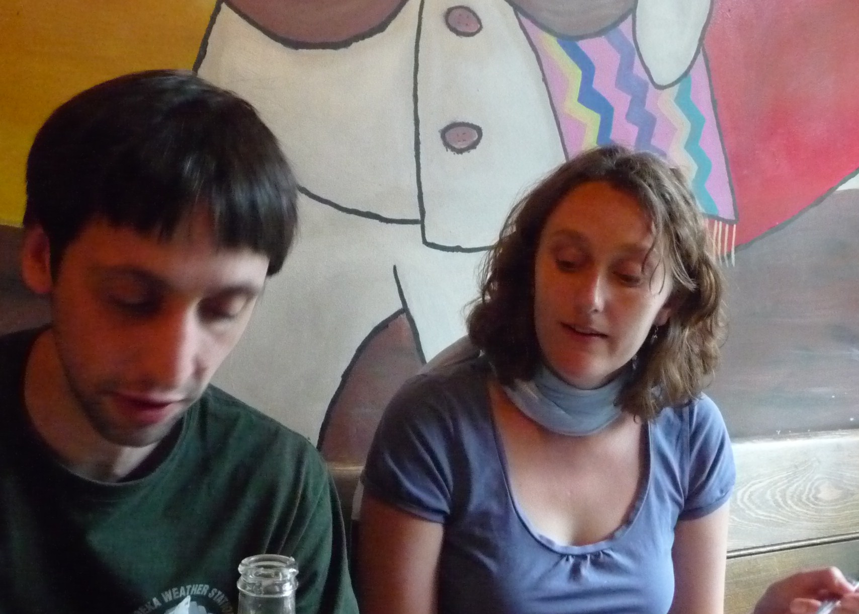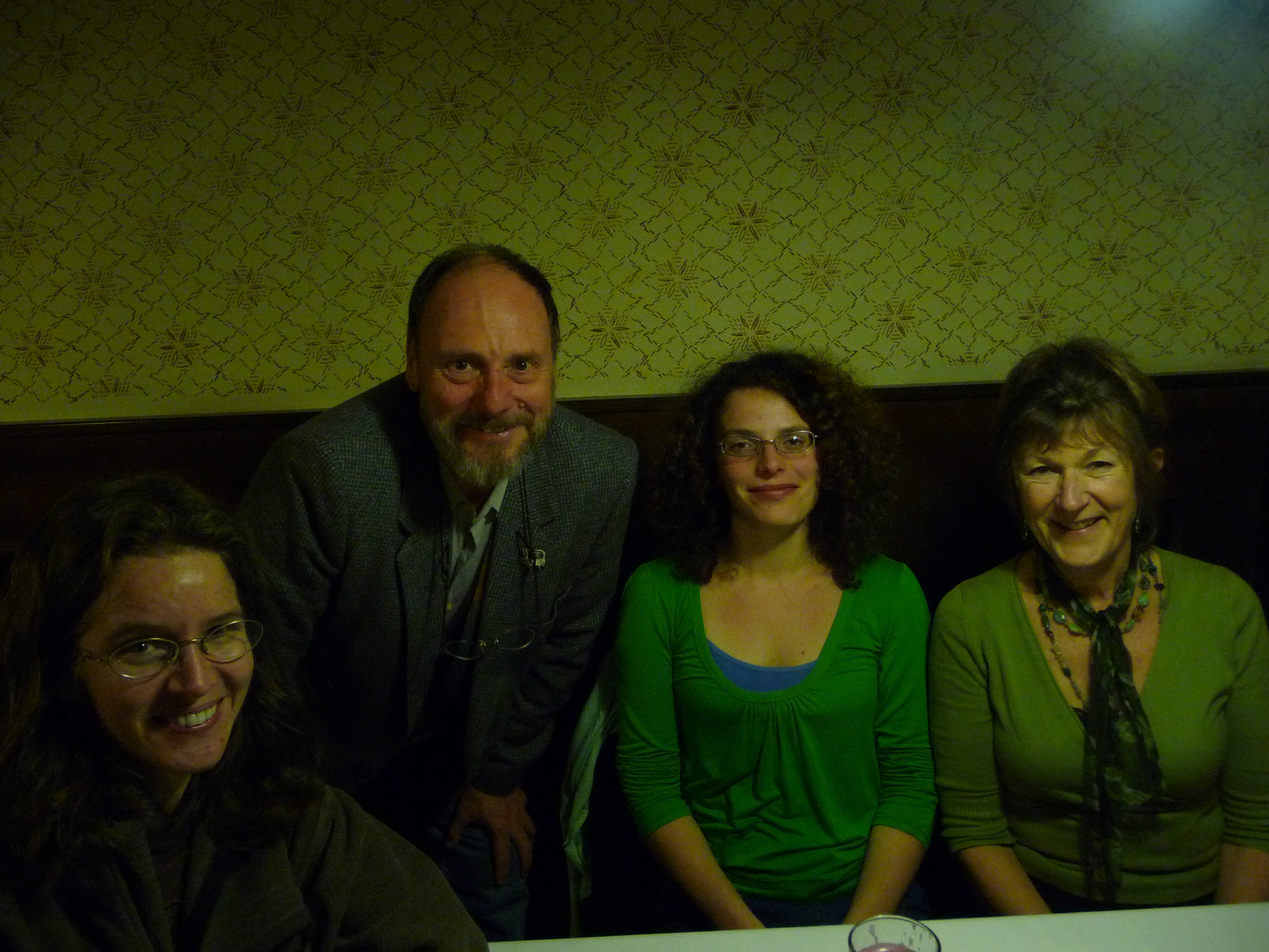 This is John, after his reading in Brno, at dinner with Katka, Zuzka, and Amanda.