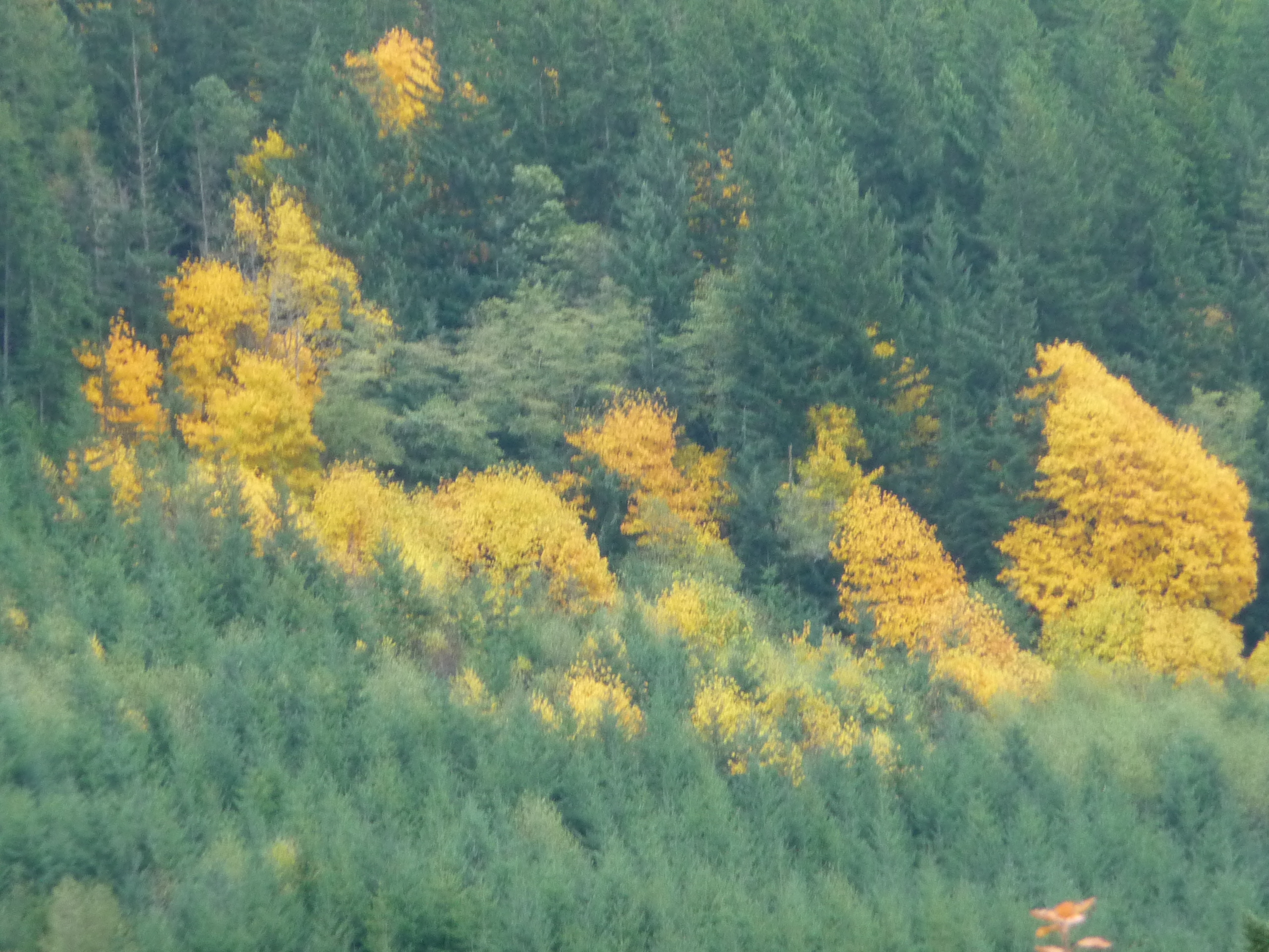 On our way back from a swim that didn’t happen because someone at the pool let about a third of the water drain overnight (ooops) and the young women life-guarding this weekend were trying to fill it again and to turn away the eager swimmers (just us, at 10 a.m.), anyway, on our way back we stopped at one of the trails running along the slope of Mount Hallowell to gather 7 big bags of leaves from the mature bigleaf maples growing along that part of the trail. Tomorrow if it’s nice we’ll return for another load. We do this most years. The leaves make wonderful garden mulch. I’ve just been spreading a few bags over the raspberry beds and the boxes where I grow mostly perennial greens. The chicory is still lovely and leafy and the kale that the deer ate when they broke into the garden is coming back. Some of the seeds in the long kale pods were sprouting so I potted up a bunch of the pods in a tub for the sunroom. So far the deer haven’t their way into there.