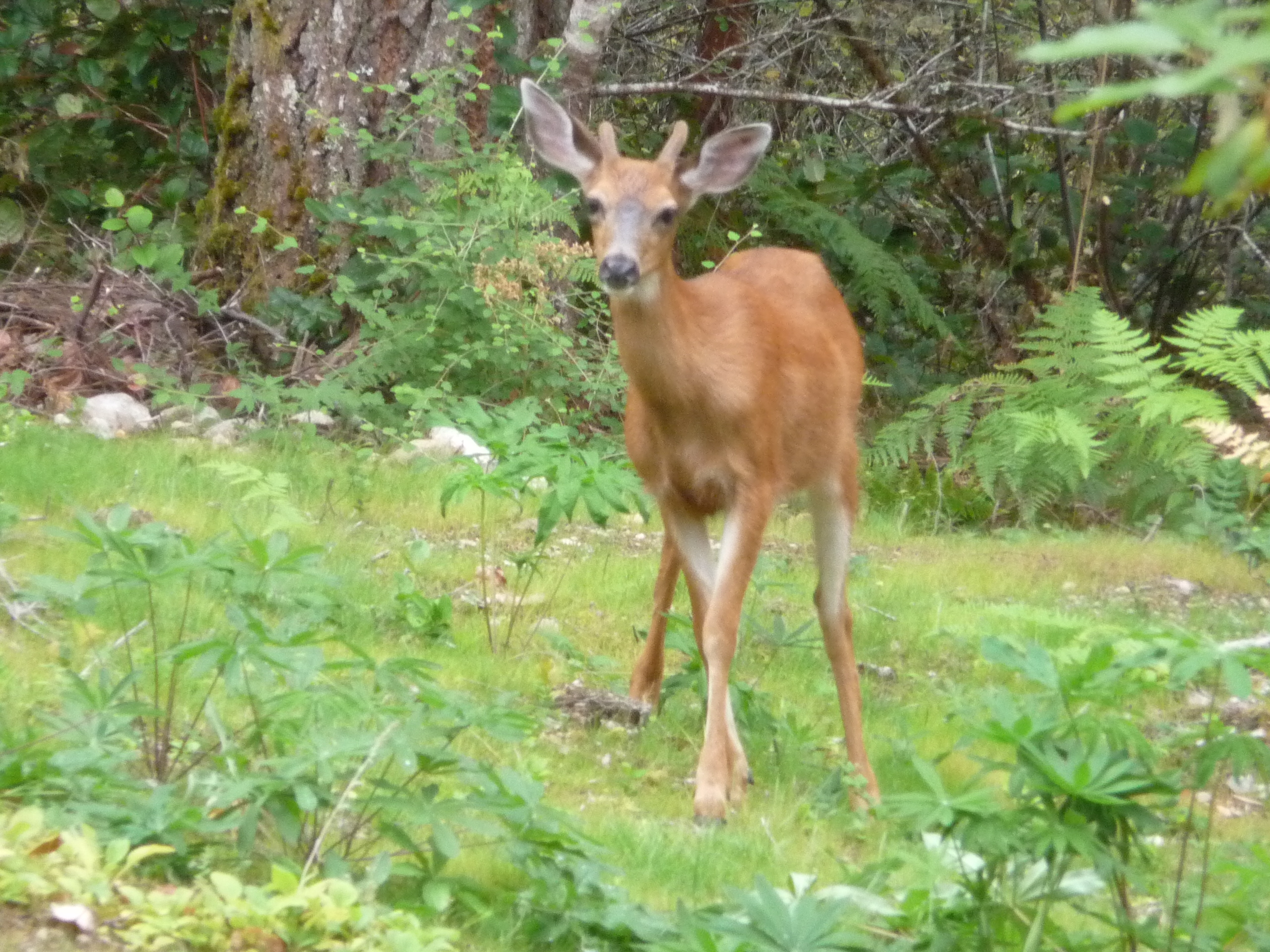 I thought of him this morning when the young doe ambled by my study window. She comes most days. Is it hunting season yet? I don’t even know. I do know that when we walk up the mountain in the fall, we sometimes hear gunshot farther up. There are herds of Roosevelt elk in our area and in the past we’ve seen bow-hunters up the mountain, using a trail of beets and apples to try to lure animals out of the woods. My father hated any kind of cheating.