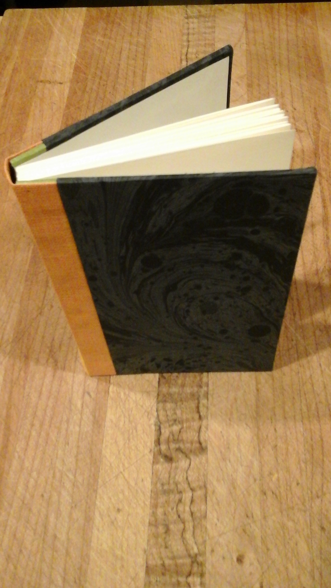 There are grand projects on display at the Wayzgoose, and smaller ones; and this time it was the smaller ones that spoke to me so clearly. Frances Hunter of Red Tower Bookworks had the most beautiful notebooks, all handbound, and many of them with covers of handmade or marbled papers. I bought several of the latter, though it was the former that intrigued me. She is making paper using invasive species — Daphne laureola, or spurge-laurel, gathered in the woods surrounding her home at Prospect Lake, near Victoria; and yellow flag iris (Iris pseudacorus). The Prospect Lake area is one I know well, having spent my teen years at nearby Royal Oak, and having ridden my horse many Sunday mornings out to Prospect Lake where old farms and the general store held stories of the colonial settlement of the Saanich peninsula. Frances is working on projects involving moths and their association with plants of the Garry oak meadows of the peninsula; readers of my book Mnemonic: A Book of Trees will know how dear those meadows are to my heart.