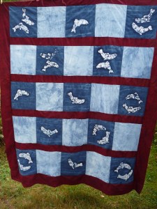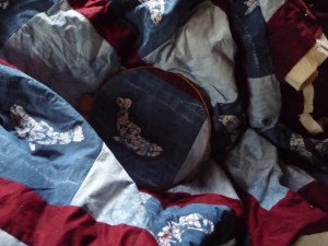 My friend Barbara Lambert sent me something she’d posted about Patrin on Facebook. It made me so happy that she’d detected the pattern at its heart and that she also provided a visual example (in her photograph, the book is resting on a potholder I made for her years ago and the potholder is layered on a beautiful piece of shibori cotton):