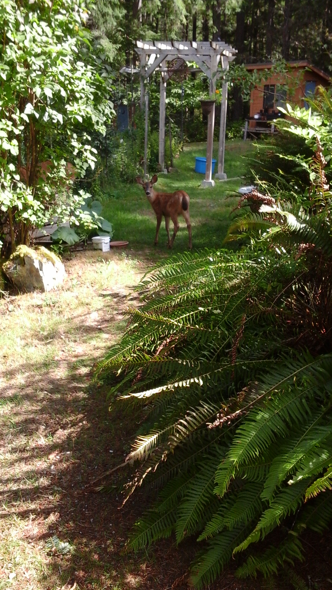 When I went out this morning, full of the sense of being home after five days in Ottawa, I was hoping I’d see a sign of the coyote who was singing and barking just beyond the house at 5:15 (I was at my desk for an hour of musing before going back to bed). No coyote and only the loons calling down on Sakinaw Lake. But the dog rose is in bloom around my bedroom window! I didn’t plant a dog rose here (though I have two others, found up the mountain, and as they’re not native to our area, there’s a story there that I’ll probably never know…) but an Alba rose, grafted onto R. canina rootstock (I’m guessing), eventually died and I let the rootstock climb and climb until it reached the second storey. It is very beautiful, with its shell pink flowers that the bees love and its long elegant hips come fall. Last week, two weasels raced along its length while I was reading in bed just before dusk. The Irish poet John Montague (who once taught for a semester at my university when I was 19) wrote of stories and dog roses and when I read this poem, it’s his soft voice I hear in my head:
