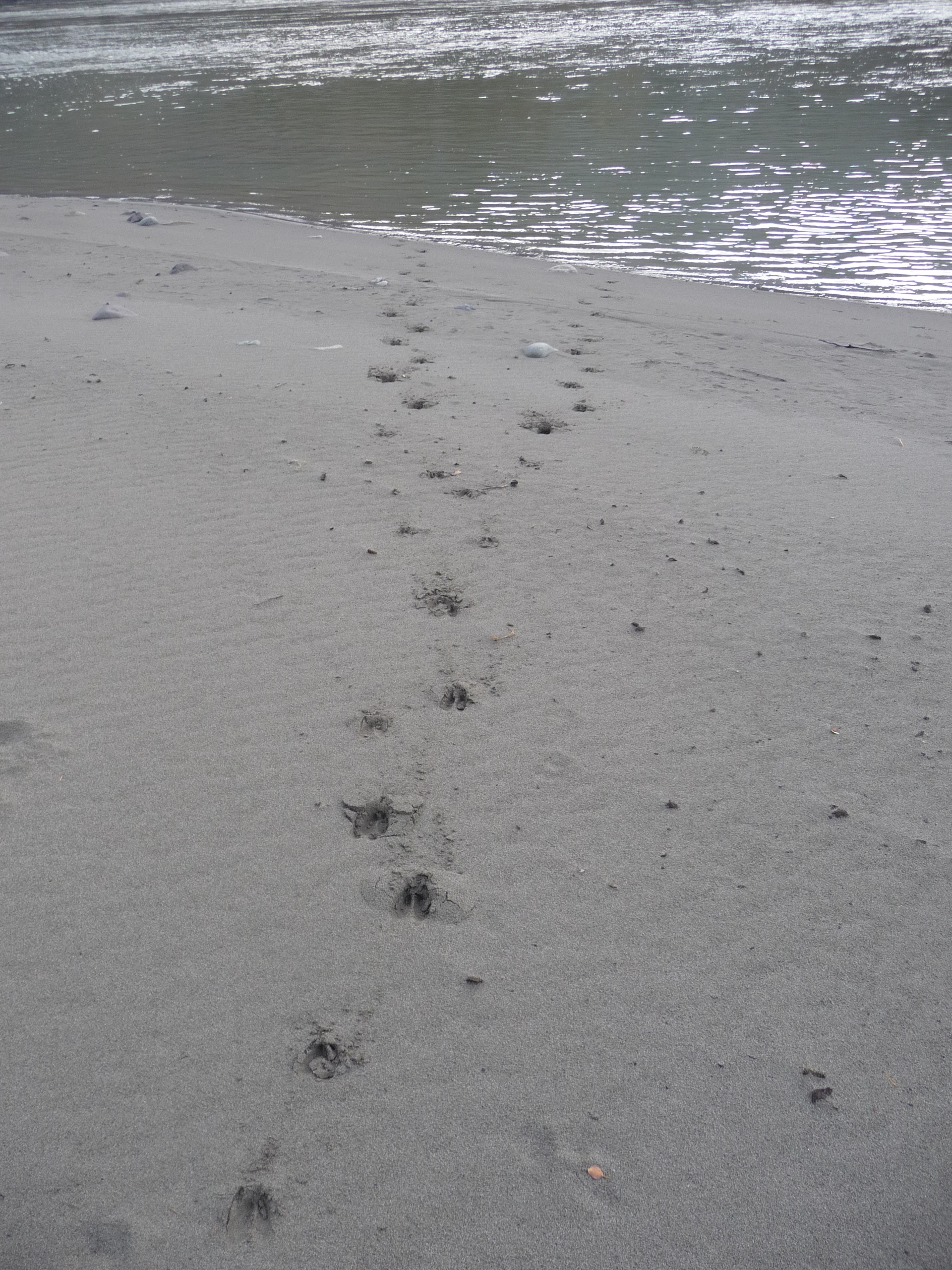 First, a walk below Lillooet along the Fraser River, a path we quickly realized was a bear’s daily route. Scat every ten feet or so, filled with pin cherry pits and rose-hips, one so utterly fresh it almost steamed. But no other sign of him. We were led to the edge of the river by deer tracks, made just a little earlier: